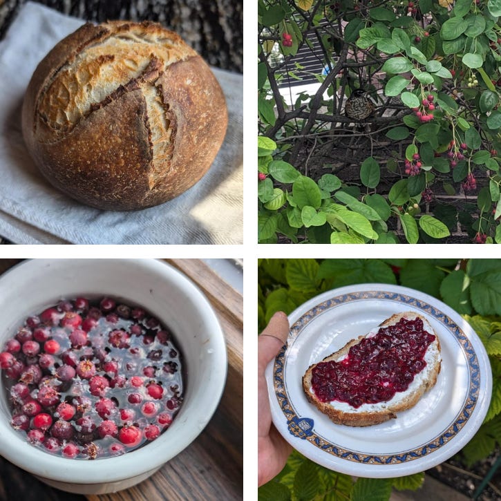 Serviceberry jam with homemade sourdough