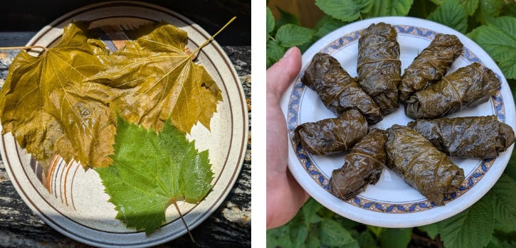 Dolma made with riverbank grape leaves